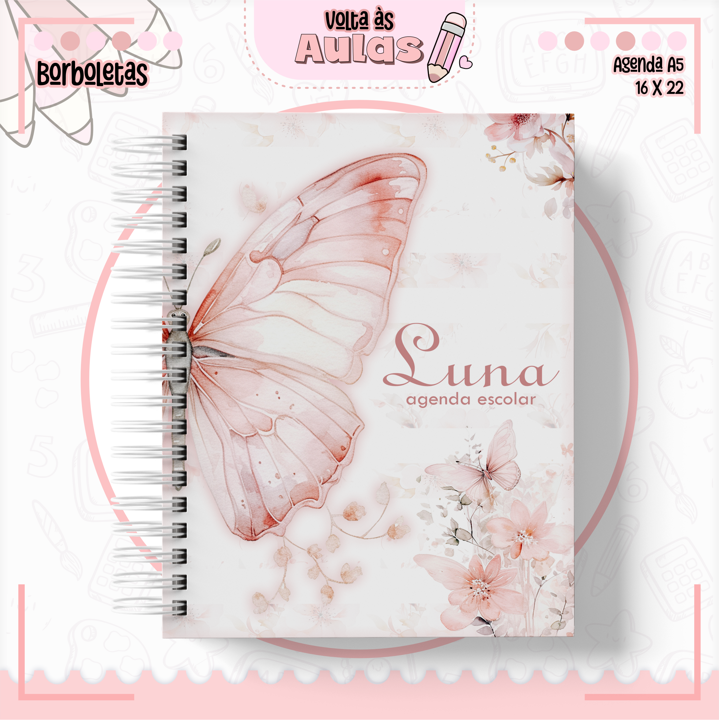 A Nossa Agenda Escolar 2024 (Infantil/Creche) esta muito fofinha, a mesma tem duas opções de cores, miolo azul e amarelo e miolo rosa e amarelo e a opção de 20 modelos de capas.